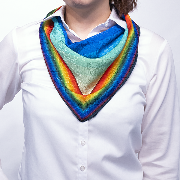 レインボーのグラデーションに花柄ジャカードが浮き出て美しく華やかな一枚です。