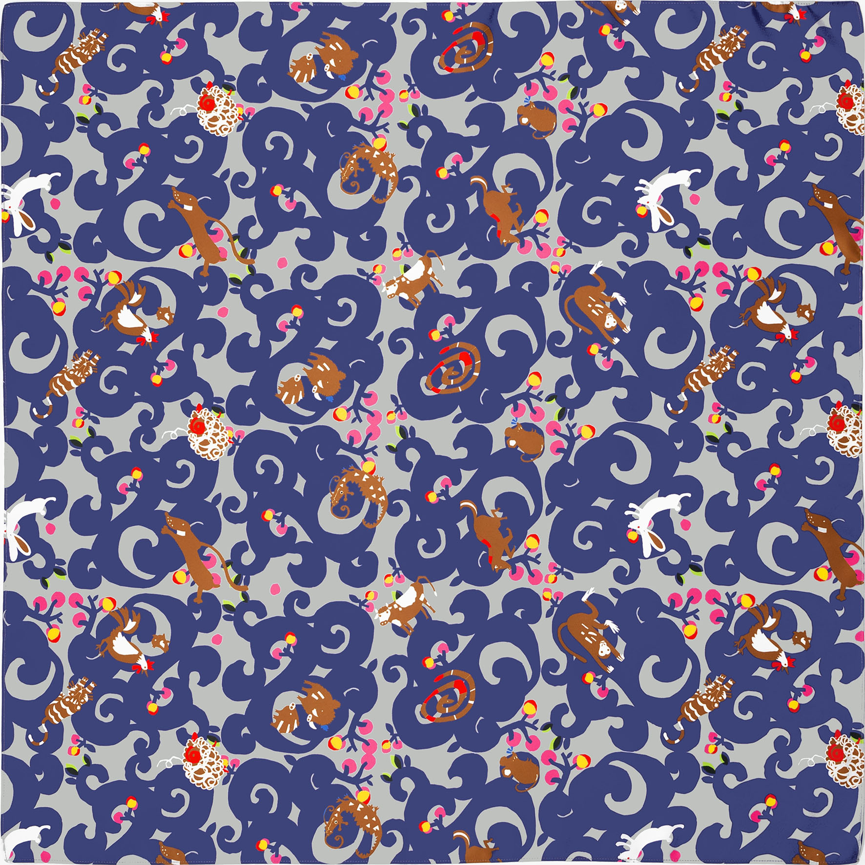 十二支の動物がかわいくデザインされた楽しくなるようなふろしきです。