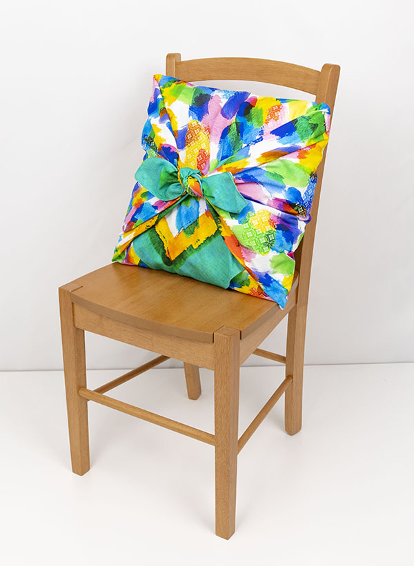 水彩画調に色とりどりの柄を敷き詰めたカラフルな風呂敷です。