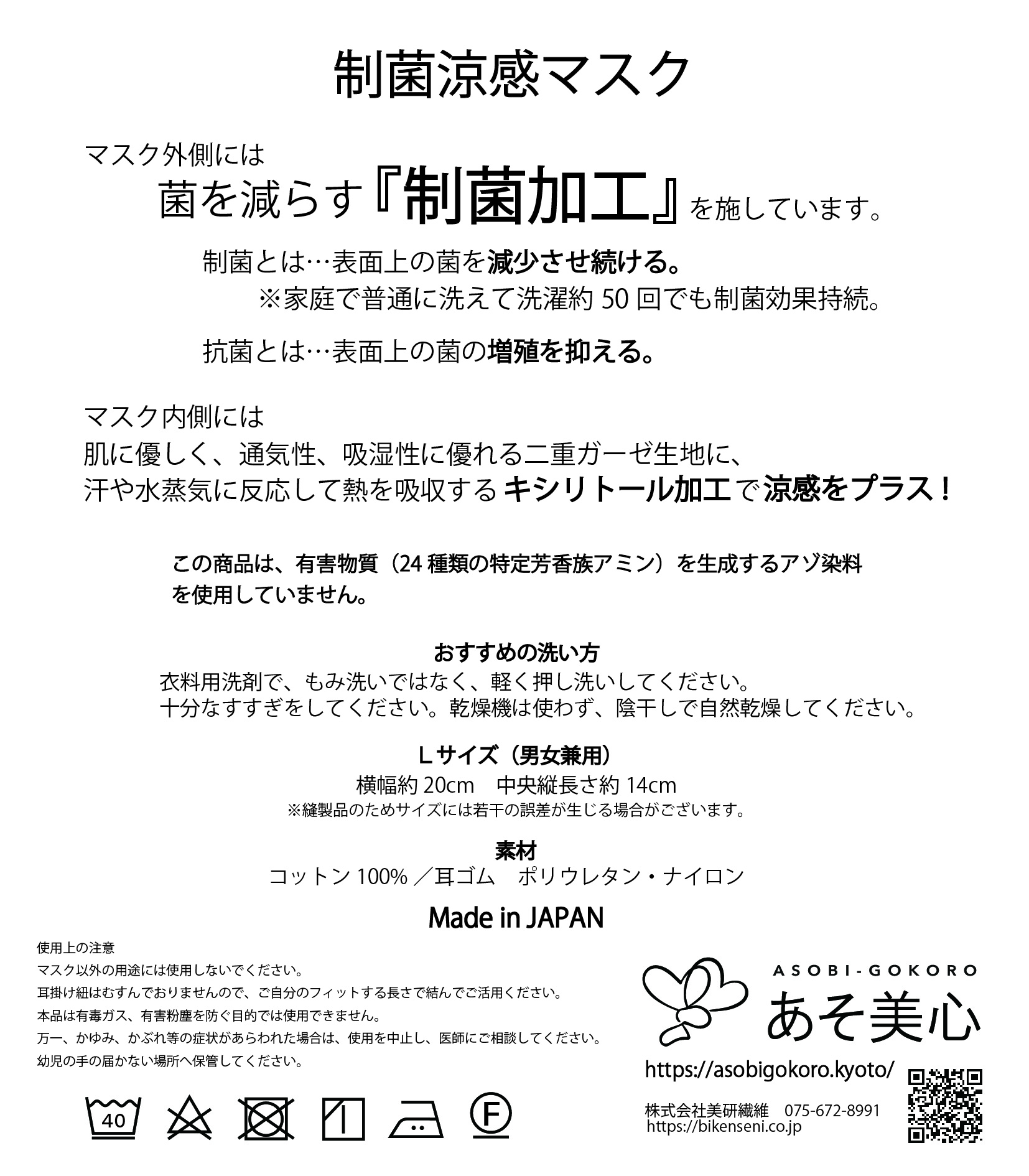 繰り返し洗って使える布マスクに性能とファッションをあそ美心流に掛け合わせました。