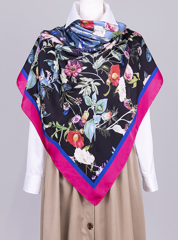 シルクのような非常に肌触りの良いサテン生地を使用しており、きめ細やかで高級感あふれるスカーフです。