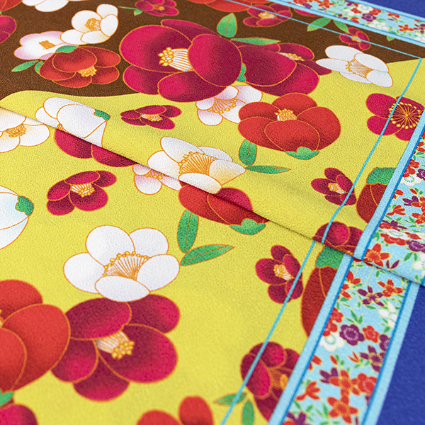 2色の中に椿の花を満遍なくあしらっており、トラディショナルな中に華やかなデザインです。